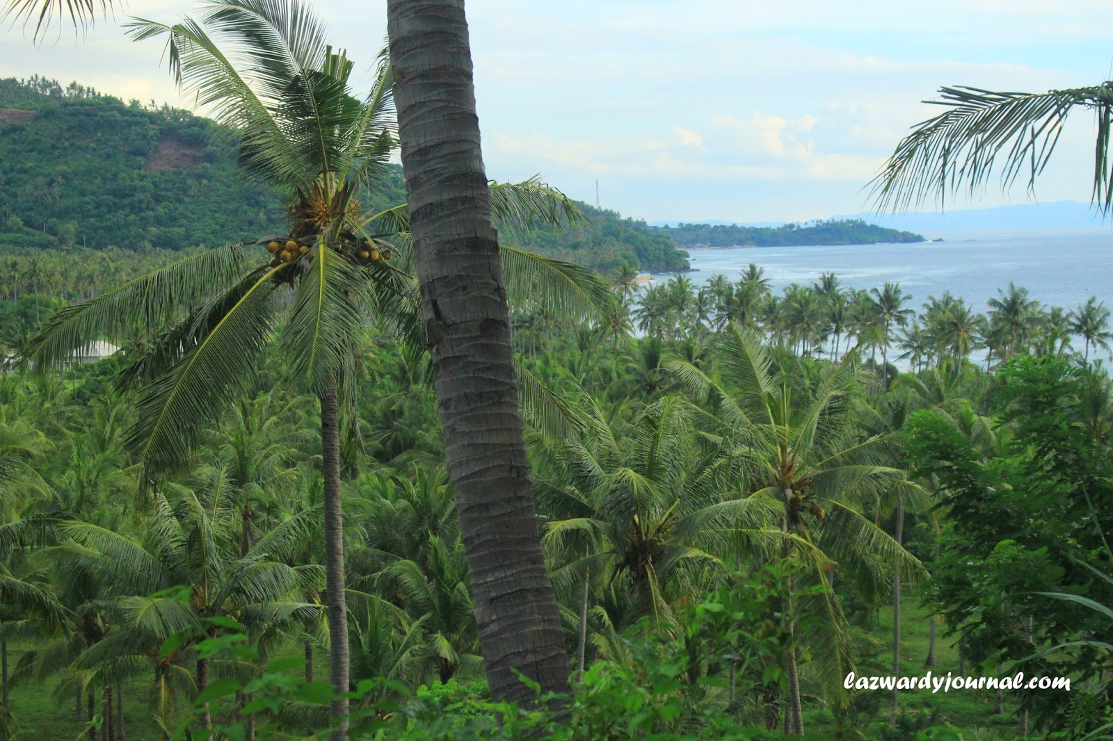 Next... Saya sudah berada di salah satu pantai yang menurut saya keren dan kece. Tapi kok pantai ini masih berbeda jauh dengan Senggigi Beach dari segi sarana dan prasarananya. Kalau ditandingi dengan keindahan alamnya, pantai ini sangat luar biasa indahnya. Banyak spot foto yang ada di pantai ini. Saya berada di jalan menanjak, tepat di atas pantai. Dari spot ini, saya bisa mengambil foto pantai tampak dari atas. Deretan pohon-pohon kelapa dan perbukitan hijau yang menambah kecantikan dari pantai ini. Apalagi pasirnya yang putih dan lautan yang biru. Betah sekali berlama-lama di tempat ini sambil menikmati keindahan yang ditampilkan.